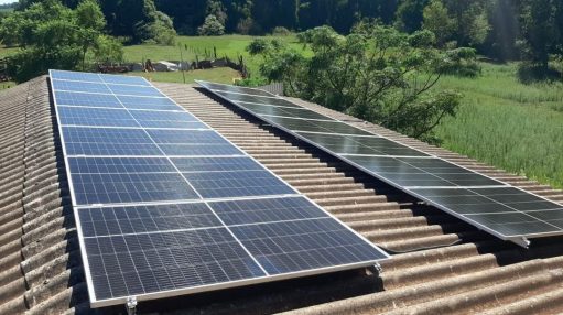 Energia Solar Rural. Sistema de 7,49 kWp, com 14 módulos instalados em Ivatuba/PR